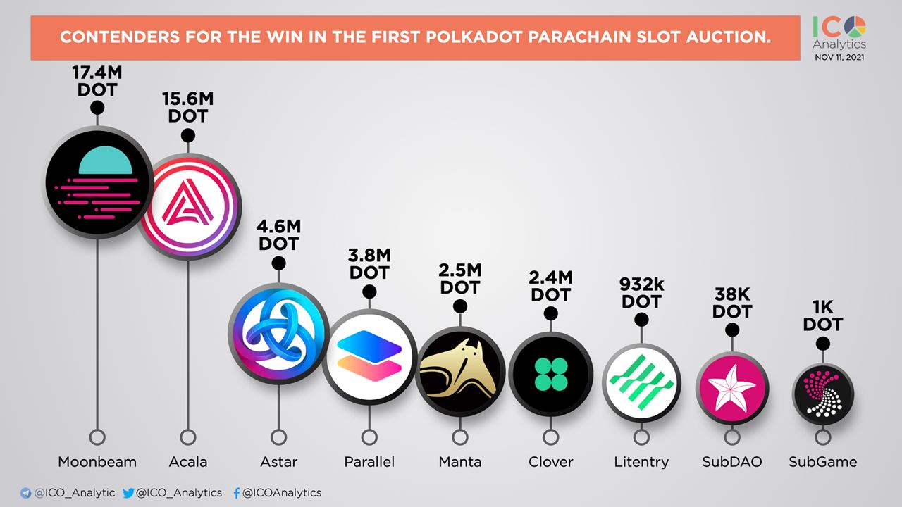 The first Polkadot parachain auction is starting today. Moonbeam is taking the lead with 17.4M DOT contributed ($870M at current rate).