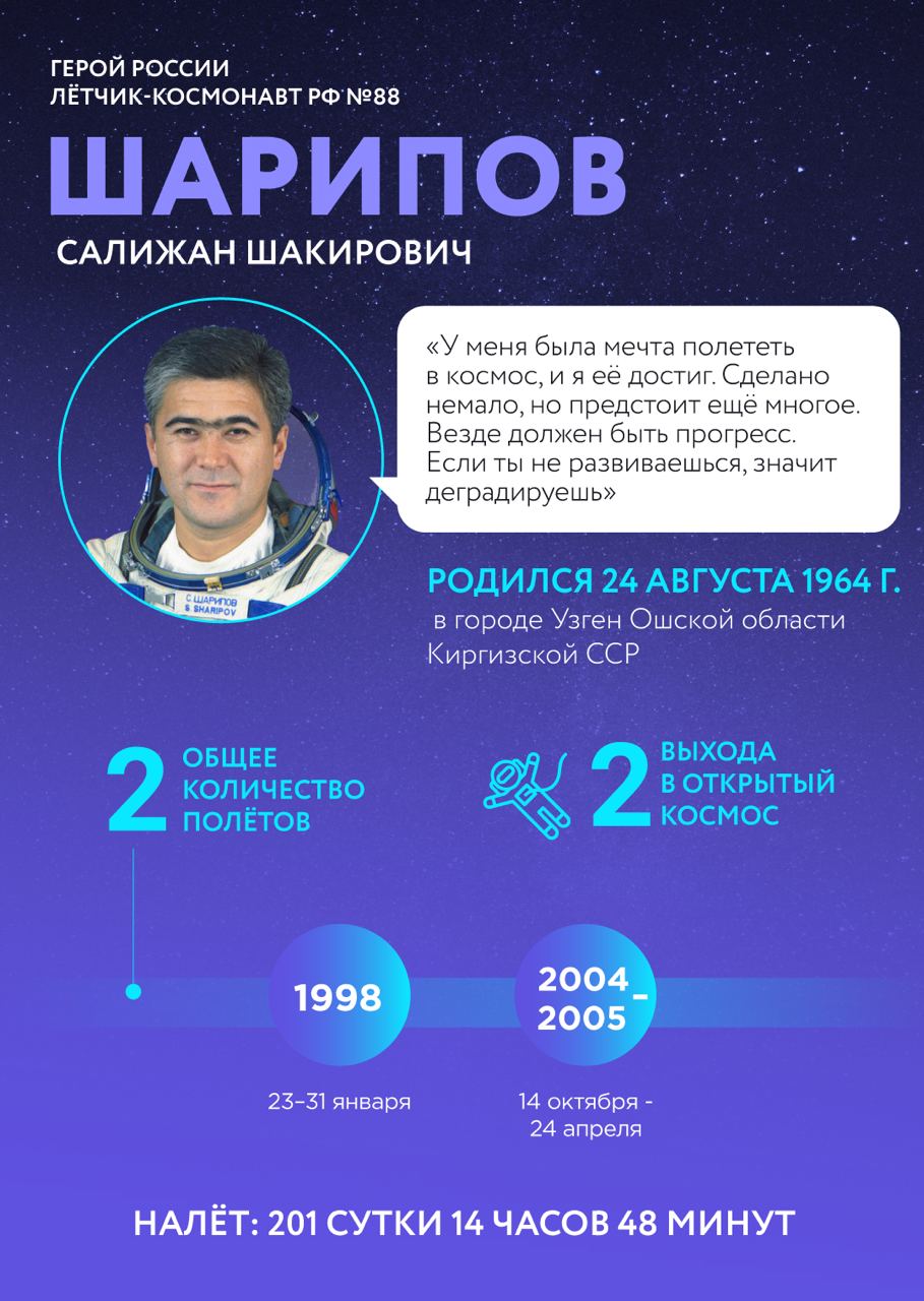 🚀 Сегодня день рождения празднует Герой России, лётчик-космонавт РФ №88 Салижан Шакирович Шарипов!