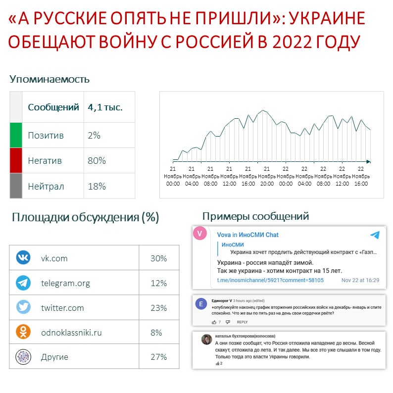 Это не первая подобная публикация Bloomberg — 11 ноября изданием уже была опубликована подобная новость, обещающая «возможную военную операцию» со стороны России, подкрепляя сказанное «общедоступными доказательствами» — которые, впрочем, не были приведены, как не были приведены и какие-либо подробности.