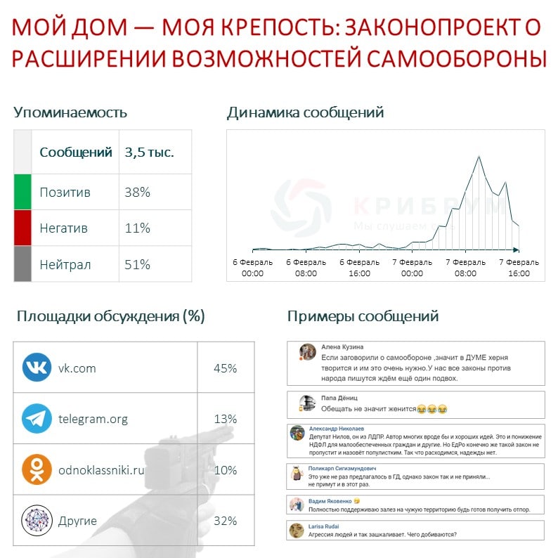 Автор законопроекта заместитель председателя ЛДПР Ярослав Нилов назвал право на неприкосновенность жилища важнейшим конституционным правом человека. «Мы считаем, что формула "Мой дом — моя крепость" должна быть закреплена в уголовном праве. Недопустимо, чтобы человек, который оборонялся от злоумышленника, применяя оружие или иные средства, защищая свою семью, вдруг сам оказывался на скамье подсудимых», — заявил Нилов.