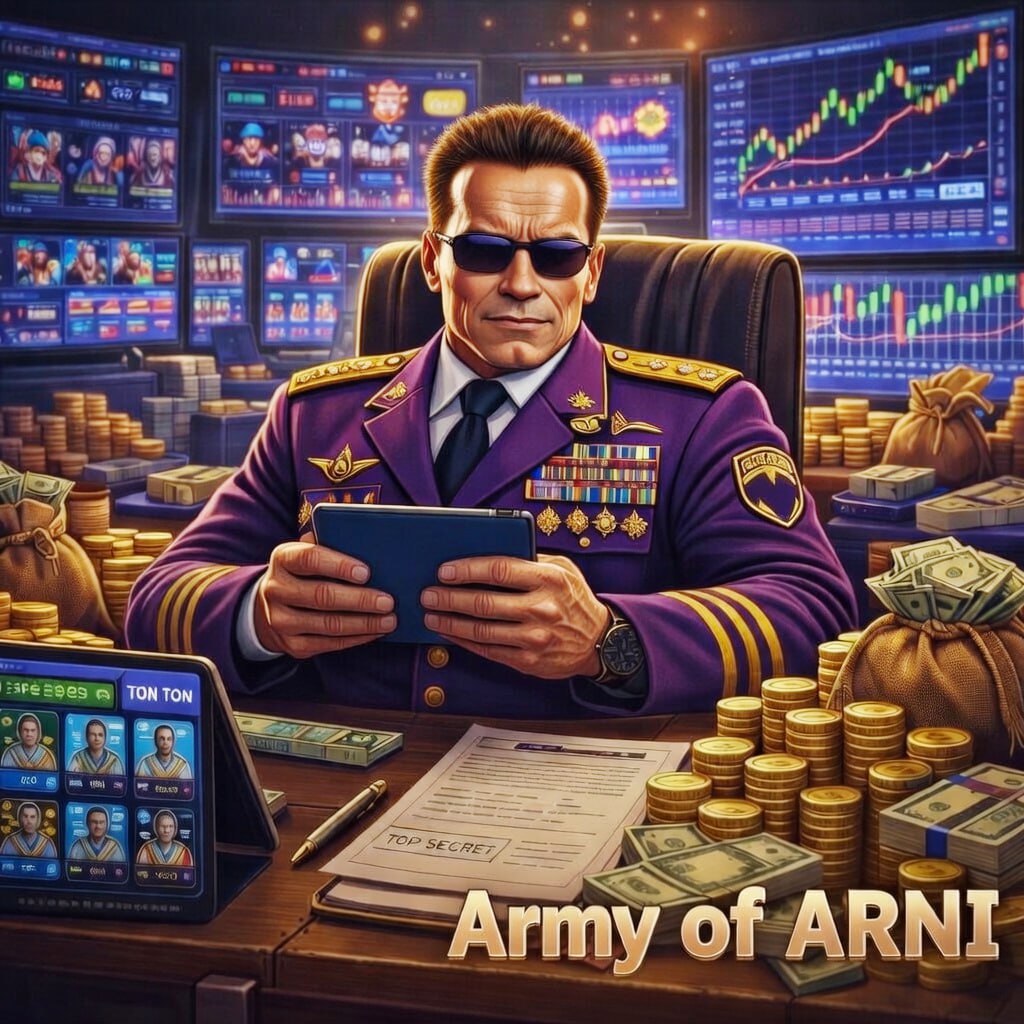 🛸 По-прежнему можно купить звание Генерал. В Марте 4 места, стоимость 100 TON или 100к ARNI (в чем удобнее). После марта таких акций будет меньше, звания можно будет заслужить в основном только набором рефералов.