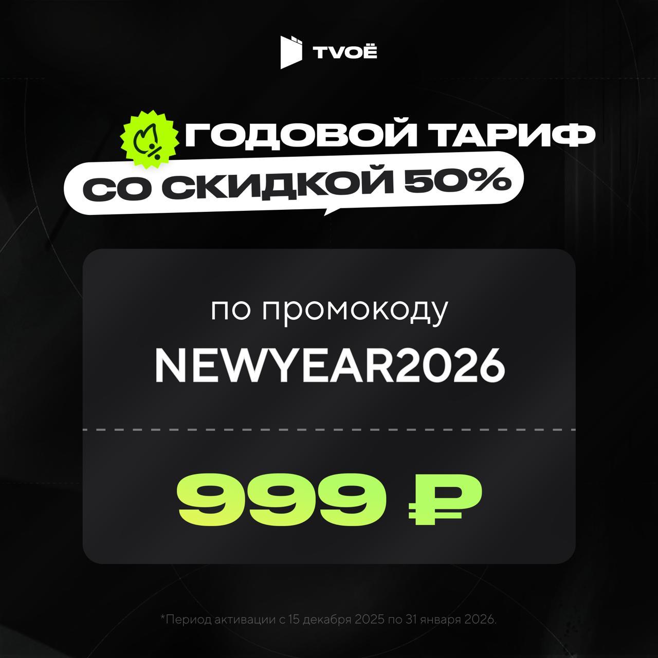 🤩 К Новому году сервис подготовил промокод NEWYEAR2026. С ним годовой тариф можно оформить со скидкой 50% — всего за 999 рублей.🔥
