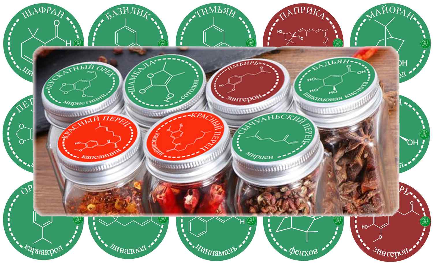 Без ложной скромности скажу, что получился отличный новогодний подарок для тех кто в теме (муж-технарь-кулинар, жена-врач-фармацевт, дети, которые собираются поступать на химфак etc.). Никакого тоскливого научпопа, только суровая химия природных соединений. Количество стикер-паков ограничено, стоит дорого. Подробности смотрим по ссылке, там же и перечень всех специй(50 позиций не предел, возможно будет и дополнение).