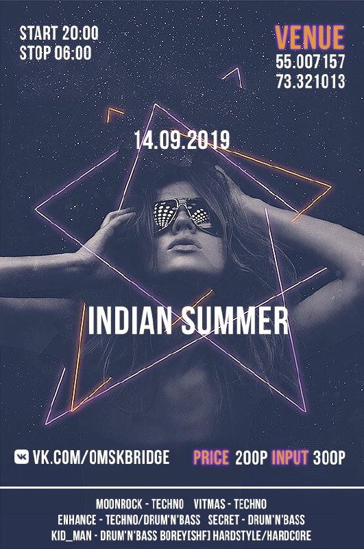 В эту субботу на Зелёном острове пройдет Techno и Drum’n’Bass рейв «Indian Summer”.