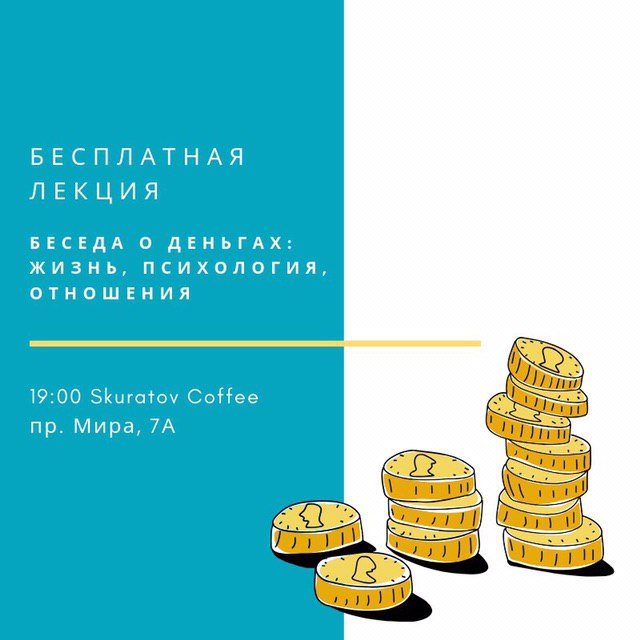 В пятницу, 13 сентября, в Скуратове на Мира, 7А пройдет лекция «Беседа о деньгах: жизнь, психология, отношения»