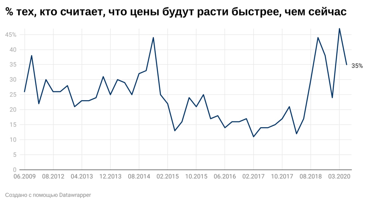 По сравнению с началом 2020 года снизилась доля россиян, ожидающих ускорения роста цен с 47% до 35%. Вместе с тем, анализ долгосрочного тренда за три года указывает на постепенный рост инфляционных ожиданий среди всех доходных групп. Чувствительнее всех эти изменения замечают наименее обеспеченные слои населения.