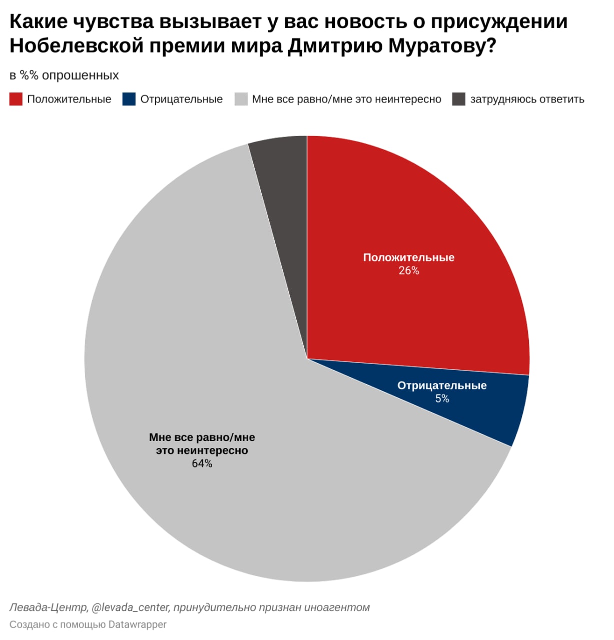 Четверть россиян знают о присуждении главному редактору Новой Газеты Дмитрию Муратову Нобелевской премии мира. Столько же положительно относятся к этому событию. Среди соотечественников-лауреатов Нобелевской премии вспоминают прежде всего М. Горбачева, А. Сахарова и А. Солженицына.