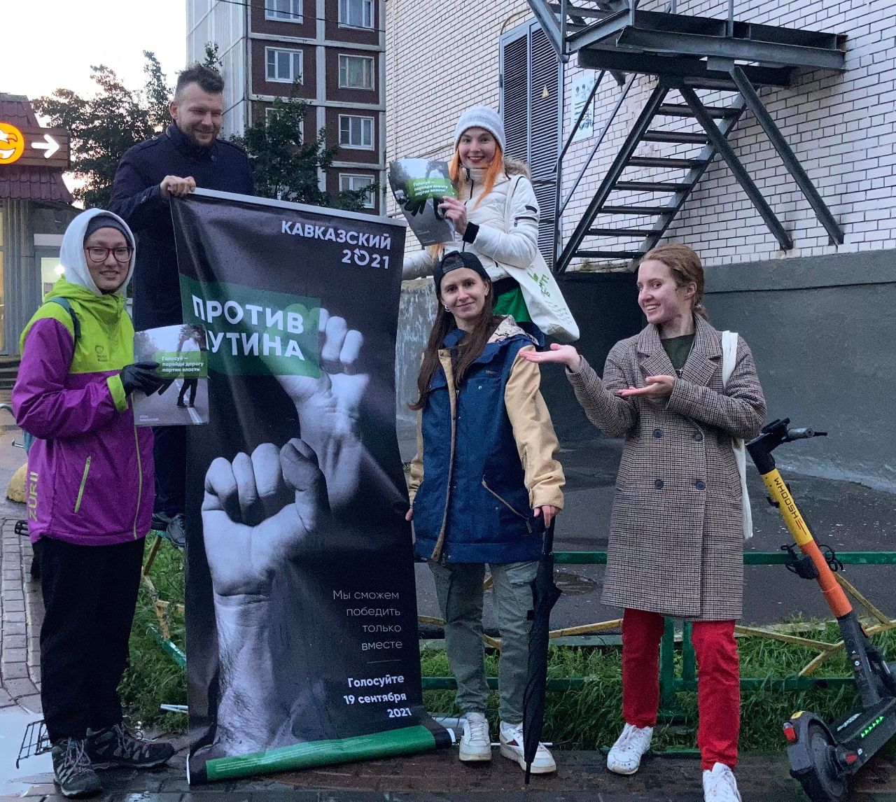 Я и мое доверенное лицо Александр Хохряков, а также агитаторы Игорь Дмитриев и Владислав Логинов задержаны за баннер против Путина, который является моей предвыборной агитацией и о котором уведомлен избирком.