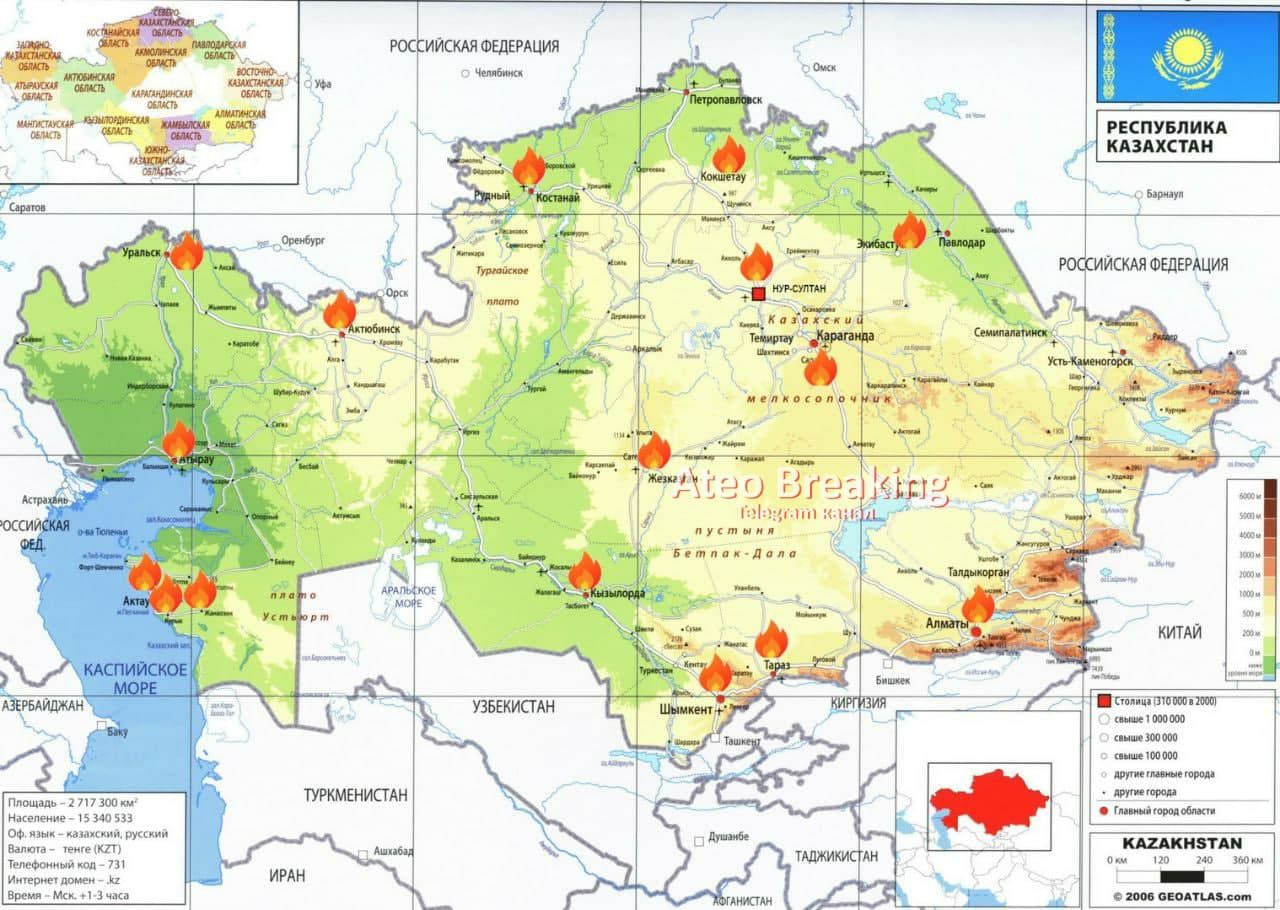 Сейчас люди вышли на митинги в Актау, Нур-Султане, Алматы, Атырау, Таразе, во многих других городах Казахстана. Проходят массовые забастовки. Власть пошла на уступки, президент Токаев сегодня утром отправил правительство в отставку. Но людям этого уже недостаточно, они выступают за демократические выборы. Власть пытается подавить протест силовым путем, в двух районах введено чрезвычайное положение, в столицу входит военная техника. Часто противостояние с полицией перетекает в горячую фазу. Но есть информация, что часть силовиков переходит на сторону народа, отказывается задерживать протестующих.