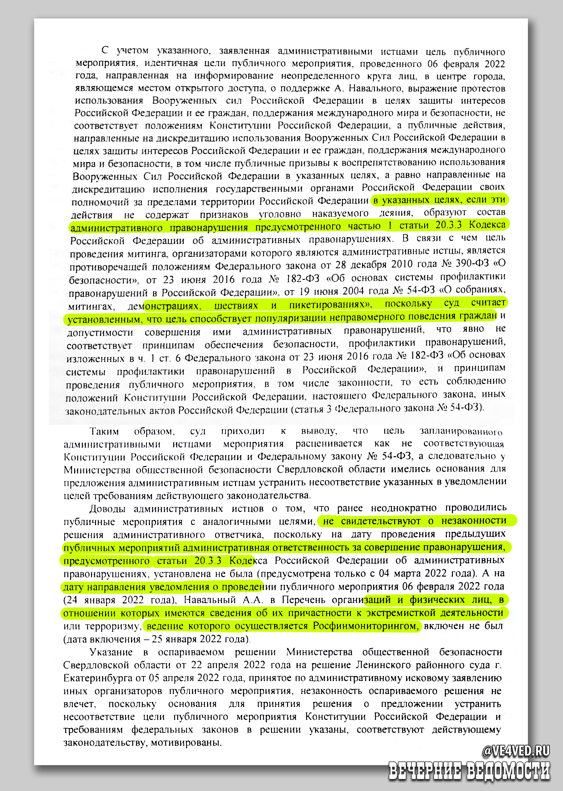 Кировский районный суд Екатеринбурга решил, что заявленные цели мероприятия не соответствуют Конституции. В доводах суда указано, что на последней Стратегии-6 (мероприятие, к слову, проводилось 9 лет каждый месяц 6 числа, кроме пандемийных лет) выражалась поддержка Алексею Навальному, а также выражался «протест использованию Вооруженных сил РФ в целях защиты интересов РФ и ее граждан, поддержания международного мира и безопасности».