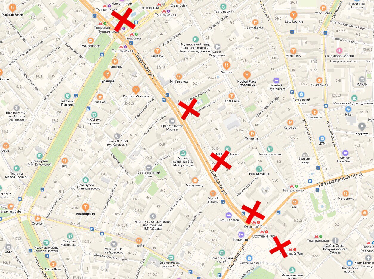 Точки сегодняшних пикетов отмечены на карте: