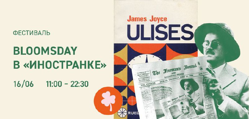16 июня в Иностранке пройдёт фестиваль ирландской культуры Bloomsday. Это всемирная акция, посвященная путешествию главного героя романа Джеймса Джойса «Улисс».