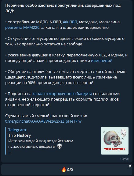 • Подписка на канал отмороженного бандита со стальными яйцами, не желающего прекращать кормить подписчиков откровенной годнотой.
