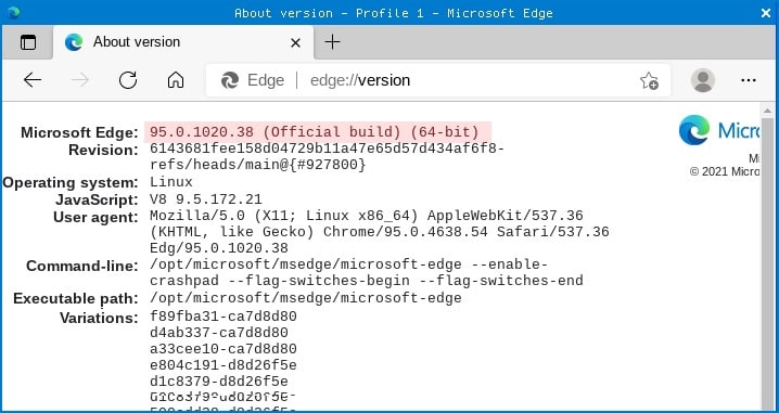 В репозитории размещён пакет "microsoft-edge-stable_95", доступный в форматах rpm и deb для Fedora, openSUSE, Ubuntu и Debian. В примечании к выпуску сборки для Linux теперь помечены как официальные, но на основном сайте браузера платформа Linux пока не включена в число поддерживаемых платформ и для дистрибутивов Linux продолжают предлагаться для установки бета- и dev-версии.