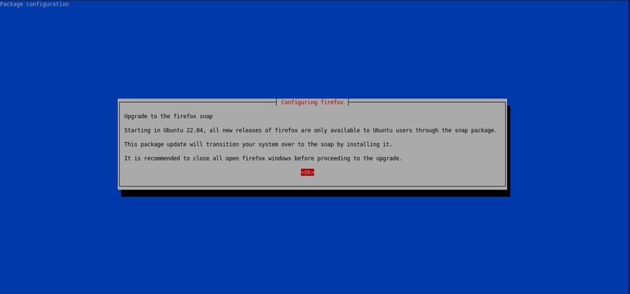 Начиная с релиза Ubuntu 22.04 LTS, deb-пакеты firefox и firefox-locale будут заменены на заглушки, устанавливающие Snap-пакет с Firefox. Возможность установки классического пакета в формате deb будет прекращена и пользователи будут вынуждены использовать либо предлагаемый пакет в формате snap, либо загружать сборки напрямую с сайта Mozilla. Для пользователей deb-пакета предоставлен прозрачный процесс перехода на snap через публикацию обновления, которое установит snap-пакет и перенесёт текущие настройки из домашнего каталога пользователя.