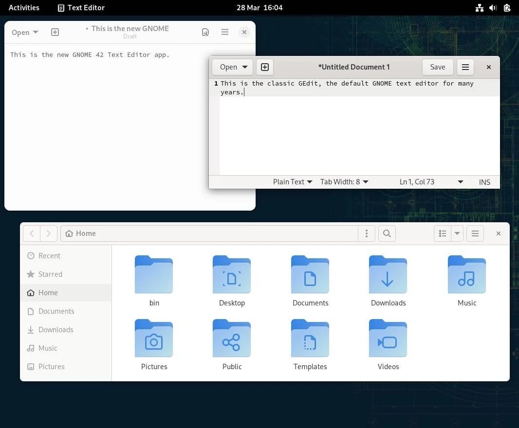 — Рабочий стол Fedora Workstation обновлён до выпуска GNOME 42, в котором добавлены общие для всего окружения настройки тёмного стиля оформления интерфейса и осуществлён перевод многих приложений на использование GTK 4 и библиотеки libadwaita.