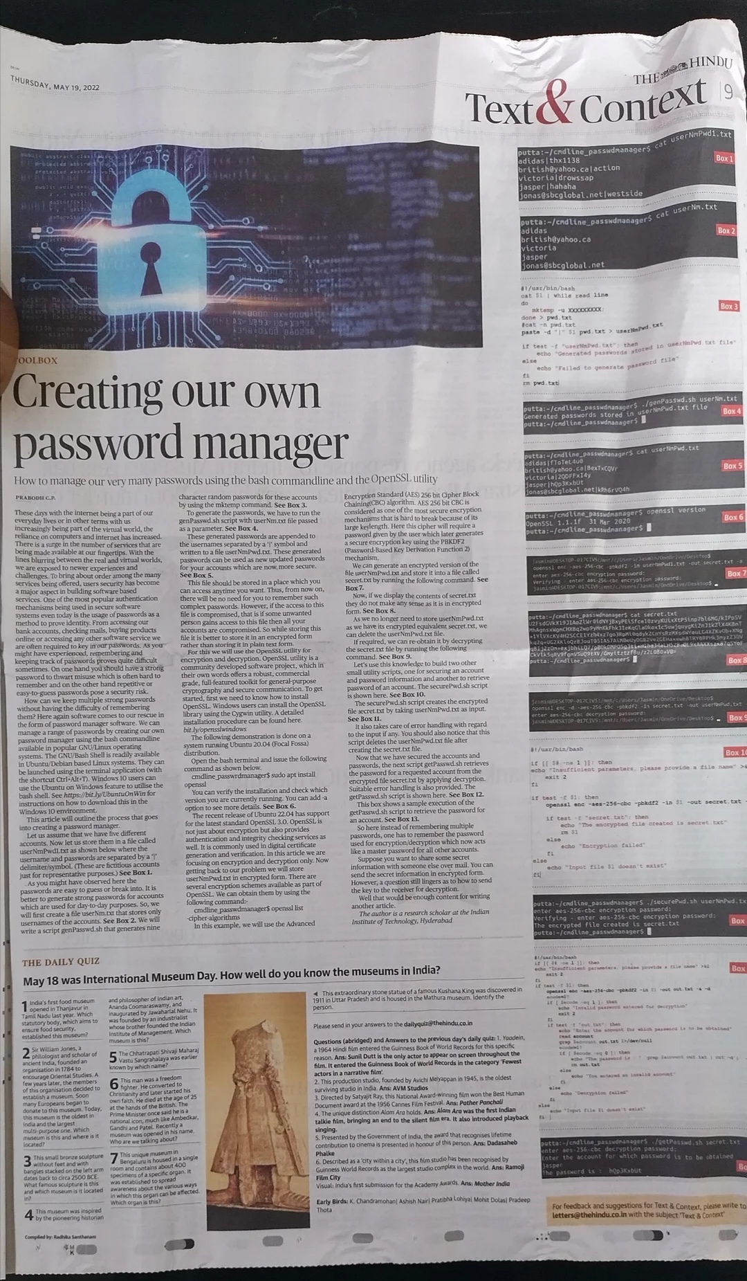 Популярная индийская газета посвятила целую страницу статье о том, как создать менеджер паролей на Линуксе
