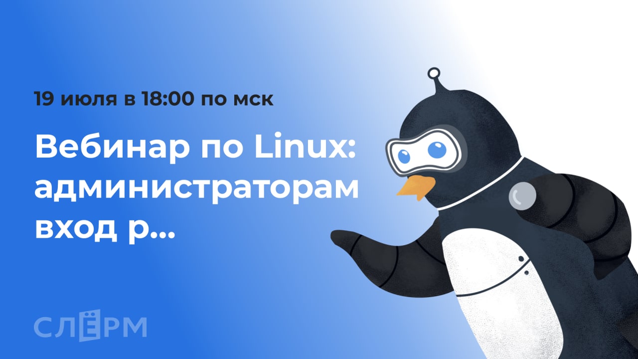 19 июля в 18:00 по мск в Слёрм пройдёт вебинар «Администраторам вход р…». Вы узнаете об организации рабочего пространства на Linux, погрузитесь в особенности виртуализации и разберёте кейсы, которые часто встречаются на практике.