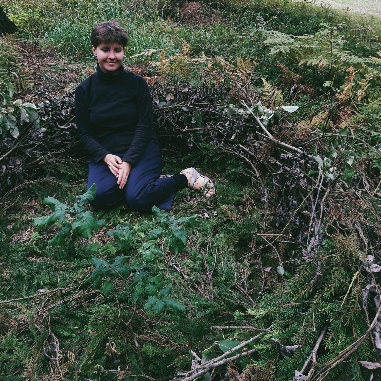 «Это мое первое гнездо», — рассказывает Настя Березина из мастерской живого театра. Гнездо — ее творческий проект. Оно находится неподалеку от столовой и для первого опыта выглядит неплохо: ветки прочно свиты, а пол устлан еловыми лапами. Внутри гнезда очень уютно, а главное — сразу появляется настроение вести доверительные беседы. Может, так действует близость к природе.