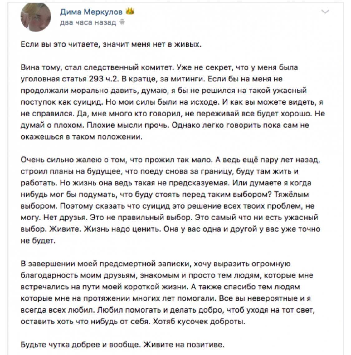 Вартан Кочиян застрелил двух приставов, которые пришли забрать его имущество, и будет сидеть в тюрьме за убийство. Александр Меркулов администрировал паблик, в котором писал про анархизм и ЛГБТ, и вероятно, он тоже будет сидеть в тюрьме, за "оправдание терроризма".