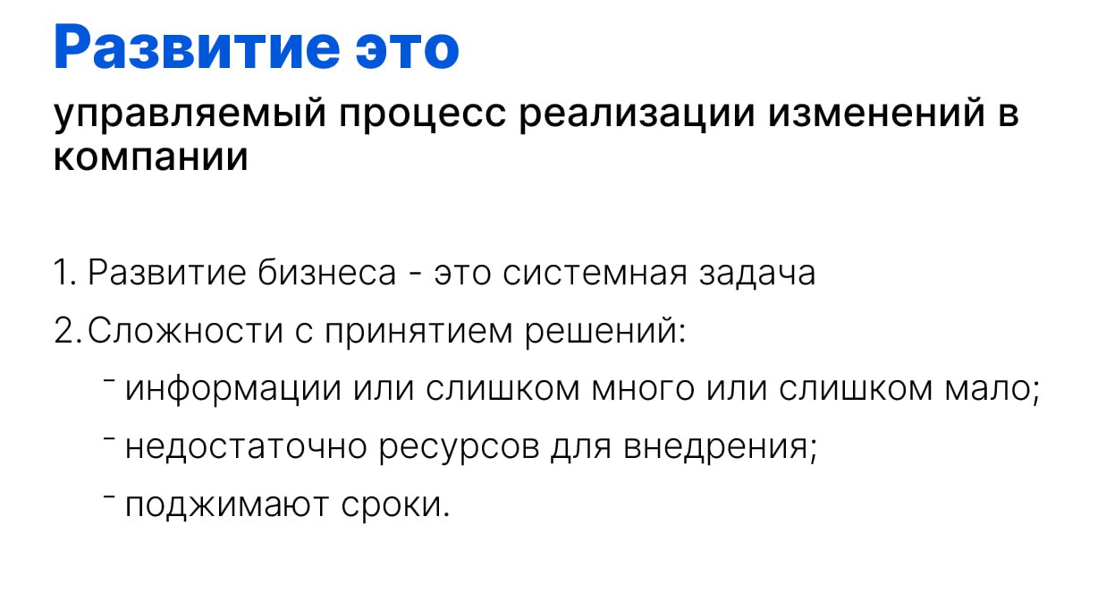 ✅ Развитие это управляемый процесс реализации изменений в компании