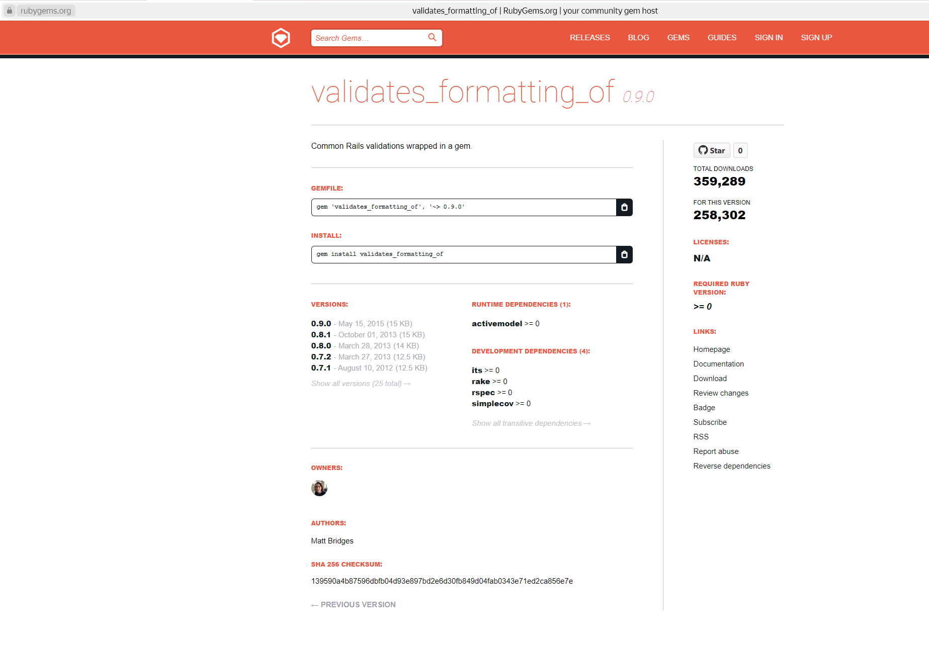 * библиотека Ruby, последнюю версию которой скачали более 250 000 раз и другие Ruby-модули, опубликованные на RubyGems;