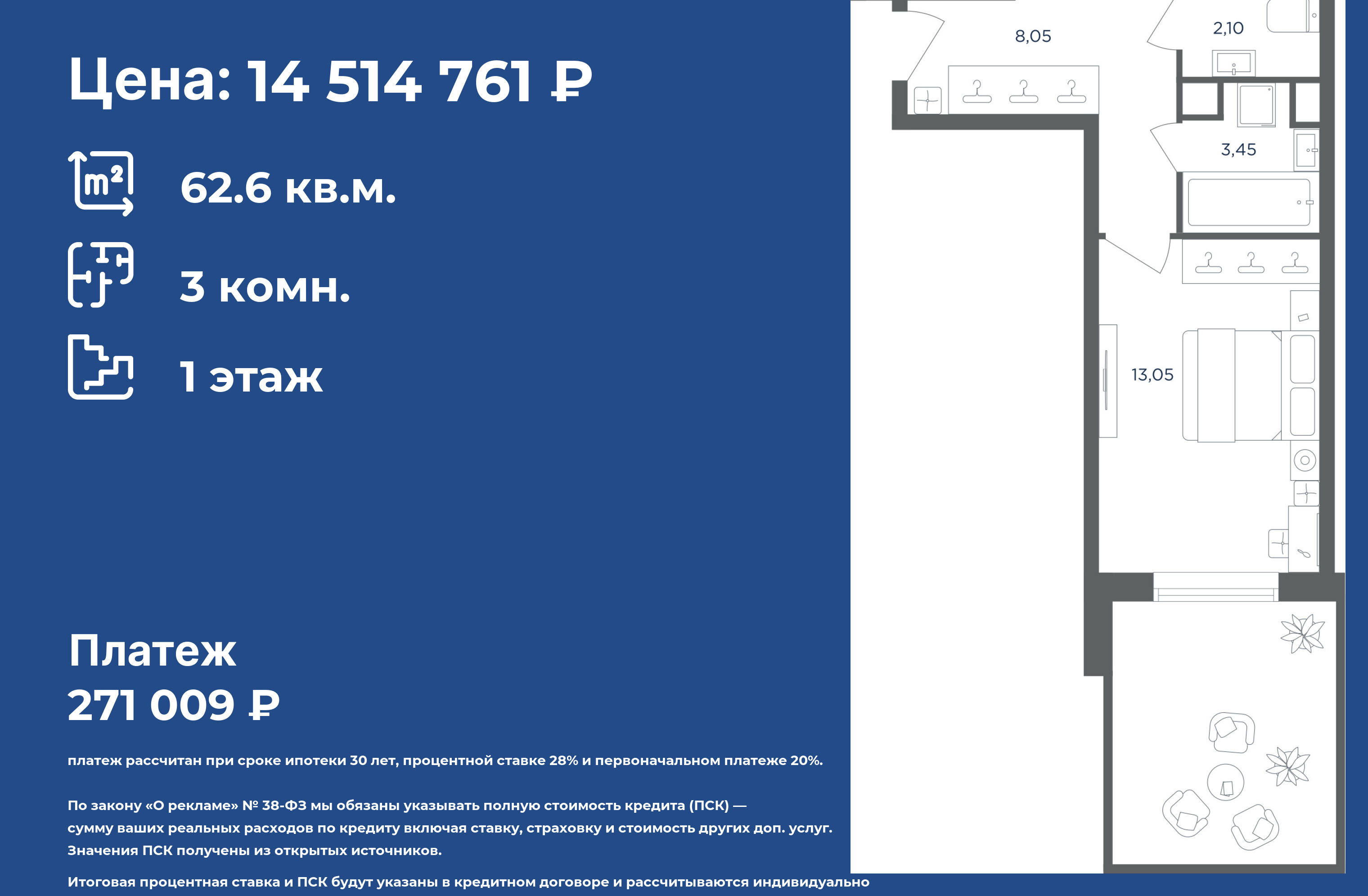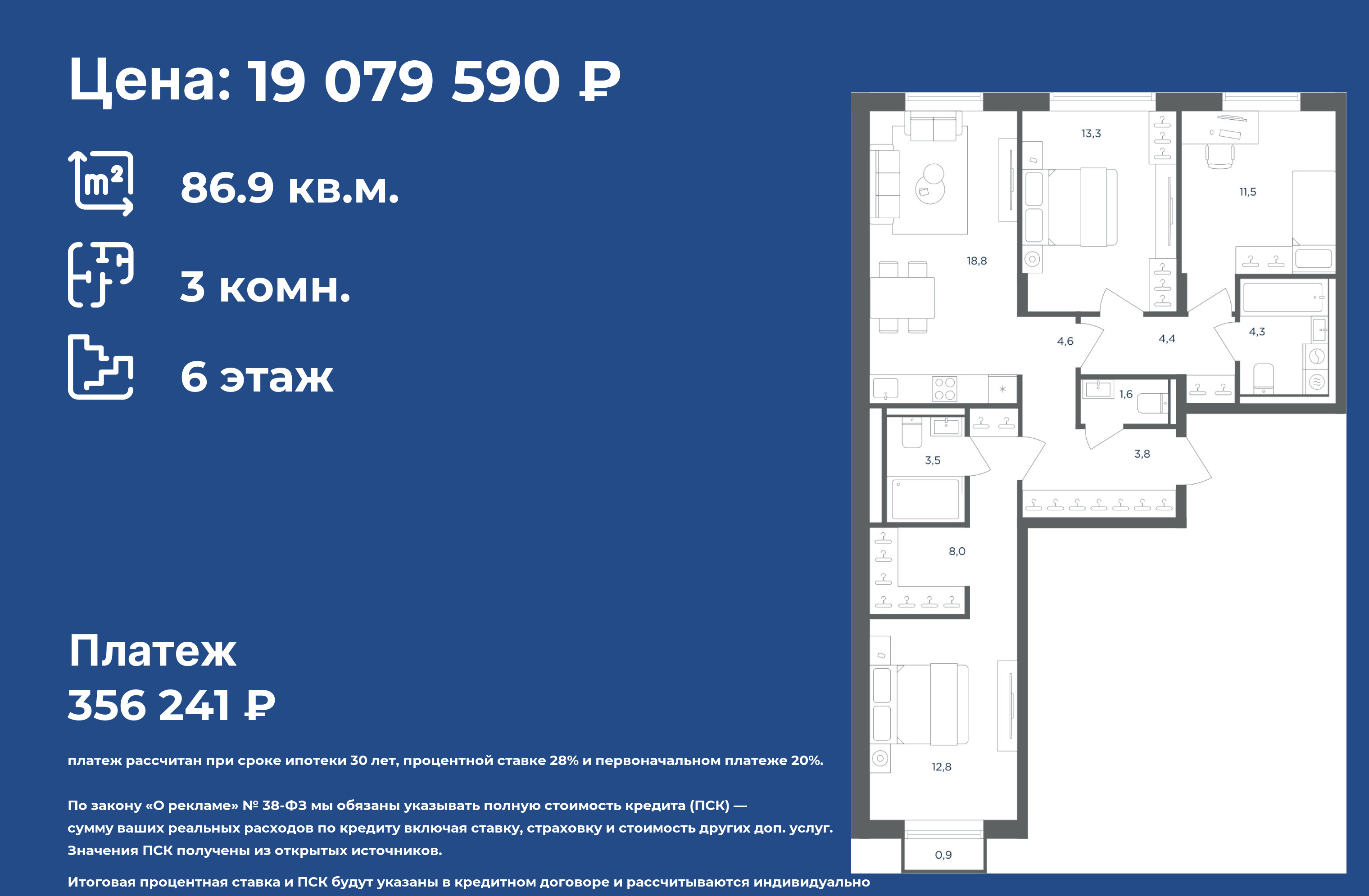 🔥 Продажа Жилая квартира за 8 310 008 ₽ по адресу , дом , корпус 3