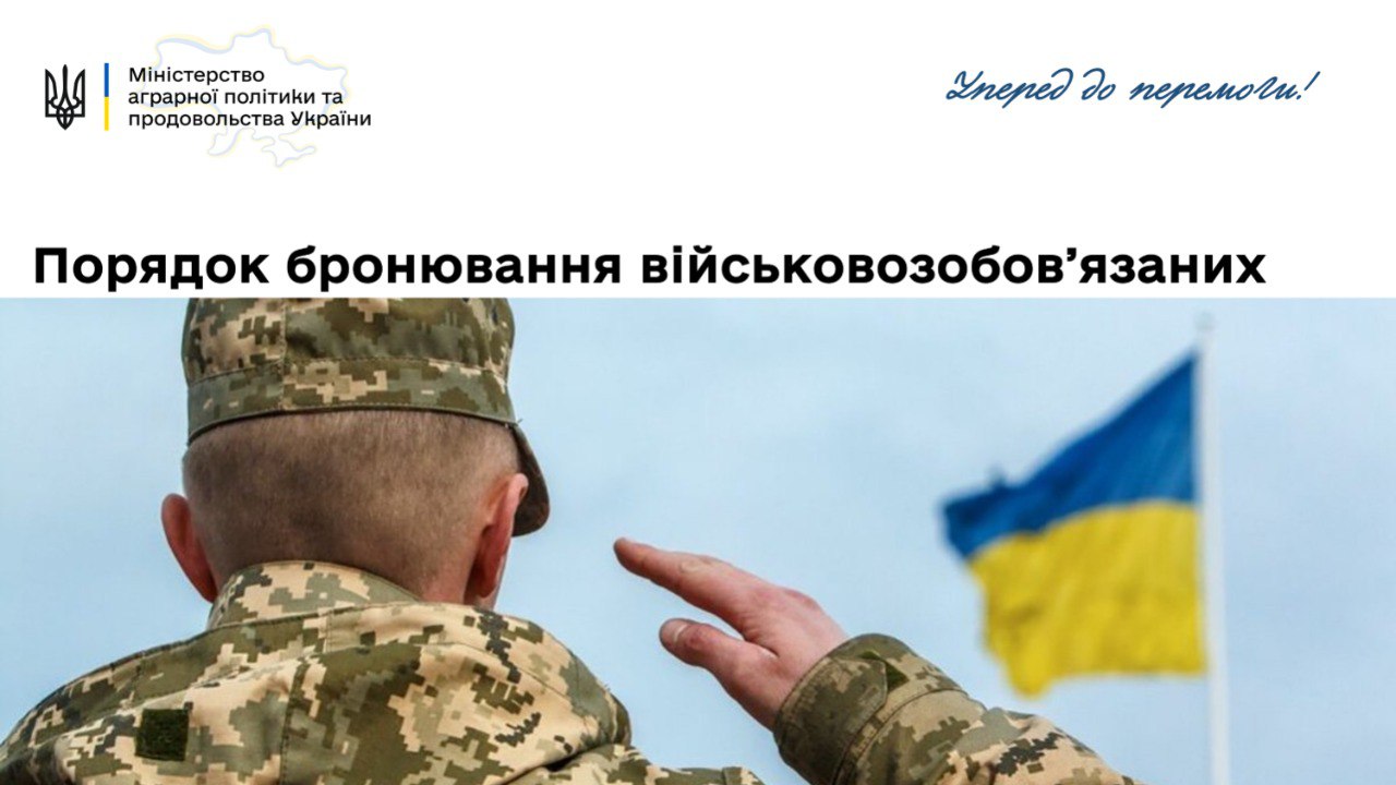 📌Міністерство аграрної політики та продовольства України зазначає про зміни Порядку бронювання військовозобов’язаних за органами державної влади, іншими державними органами, а також підприємствами, установами, організаціями, які задовольняють потреби Збройних Сил, інших військових формувань, населення в умовах правового режиму воєнного стану.