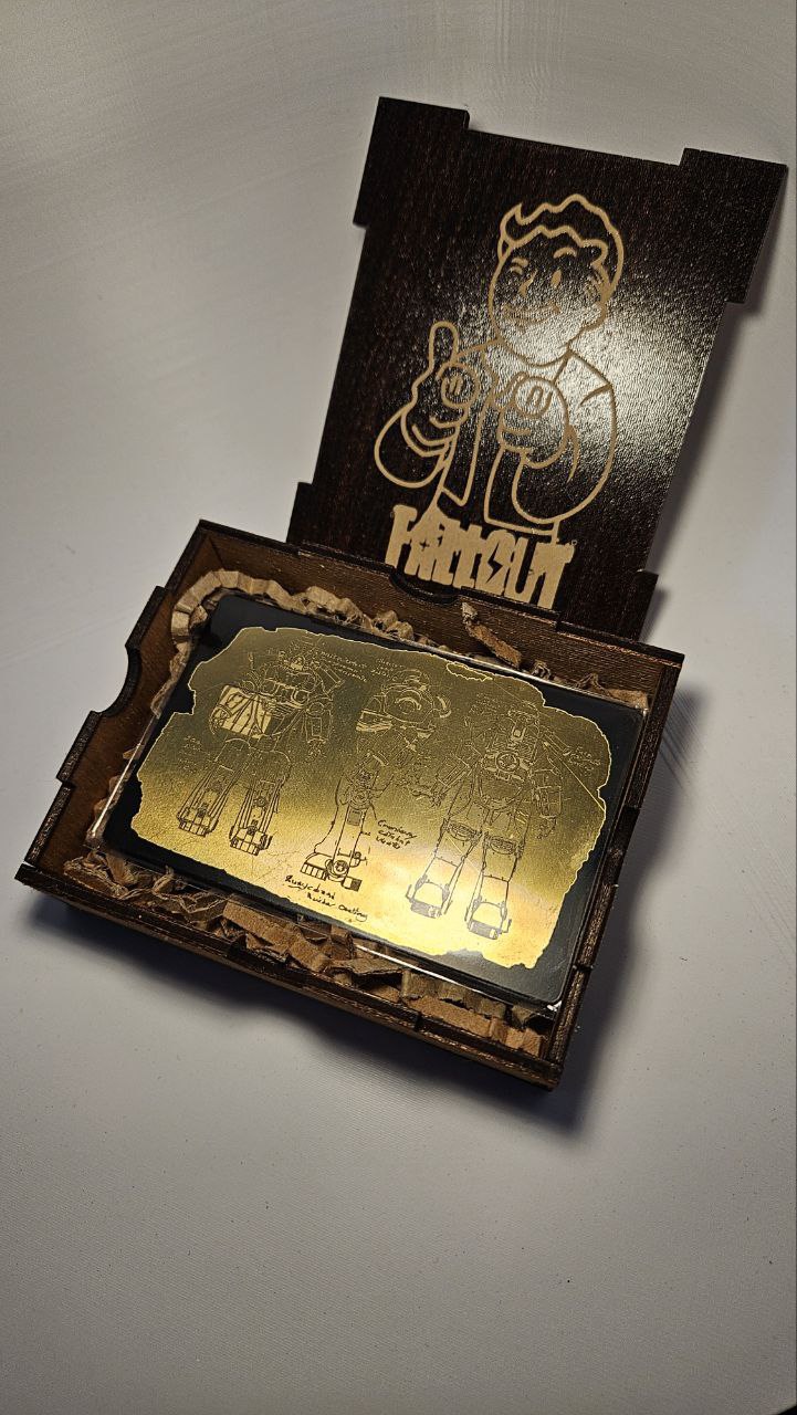 • Золотая карта* в стилистике Fallout с гравировкой - чертеж Силовой Брони!