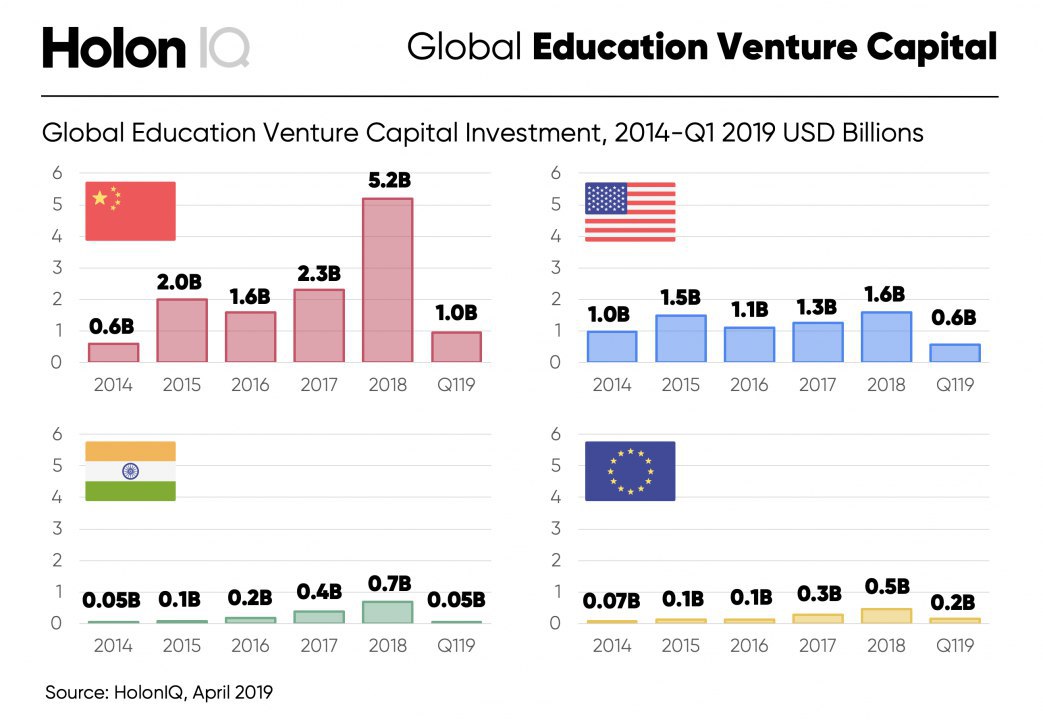 Я с интересом слежу за китайским EdTech, кажется что он уже меняет весь мировой рынок технологичного образования. Если в предыдущие 5 лет США показывал высокий темп роста в этой сфере - теперь Азия, во главе с Китаем и Индией лидируют по росту инвестиций в сектор образования.