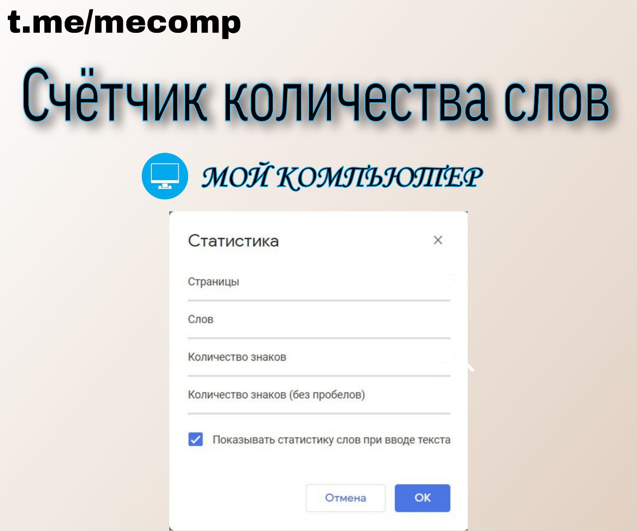 🔵 Нажмите на "Инструменты" в строке меню ➡️ "Количество слов" ➡️ "Показывать количество слов при наборе текста"