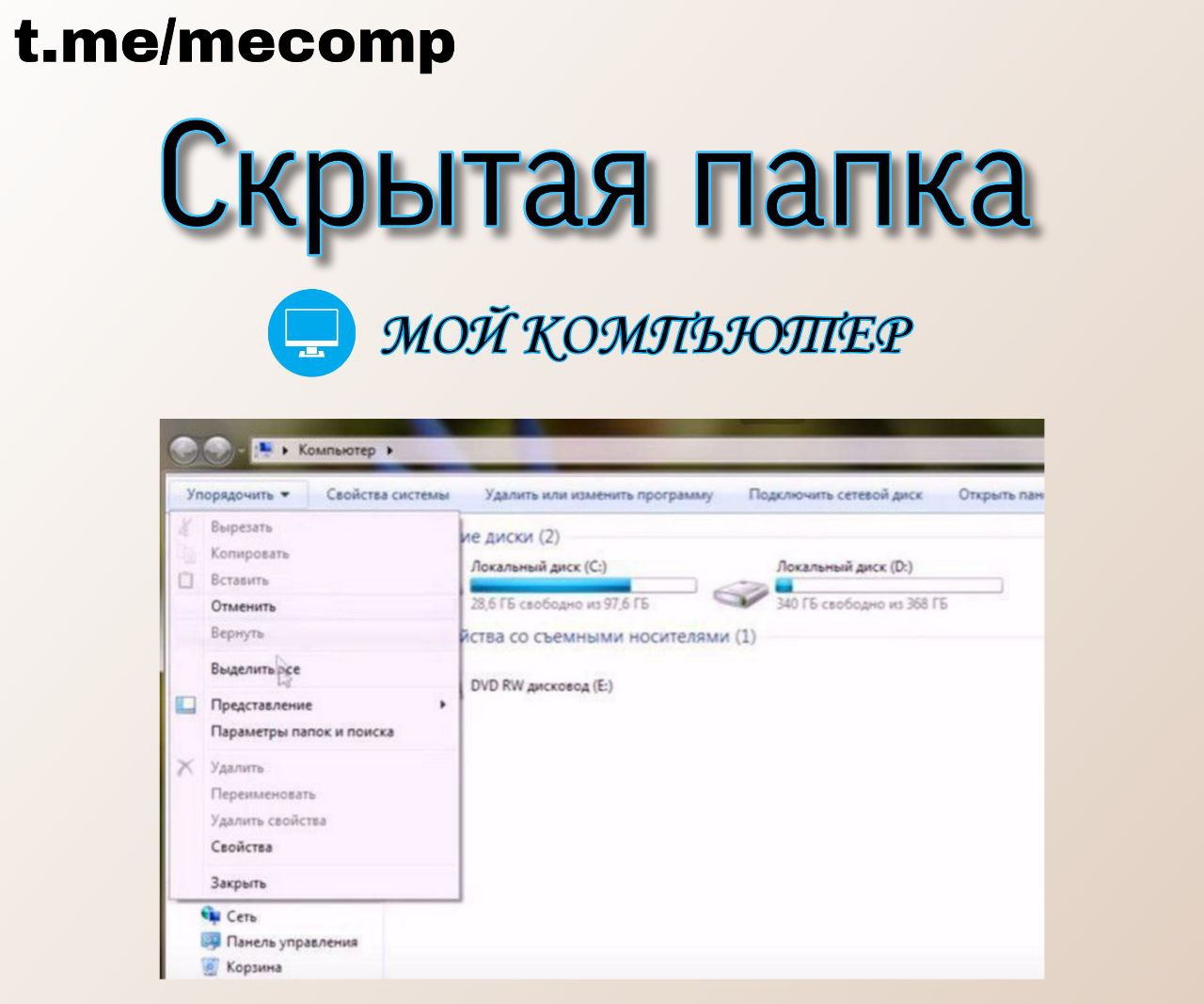 🔵 Откройте "(Мой) Компьютер" ➡️ Упорядочить ➡️