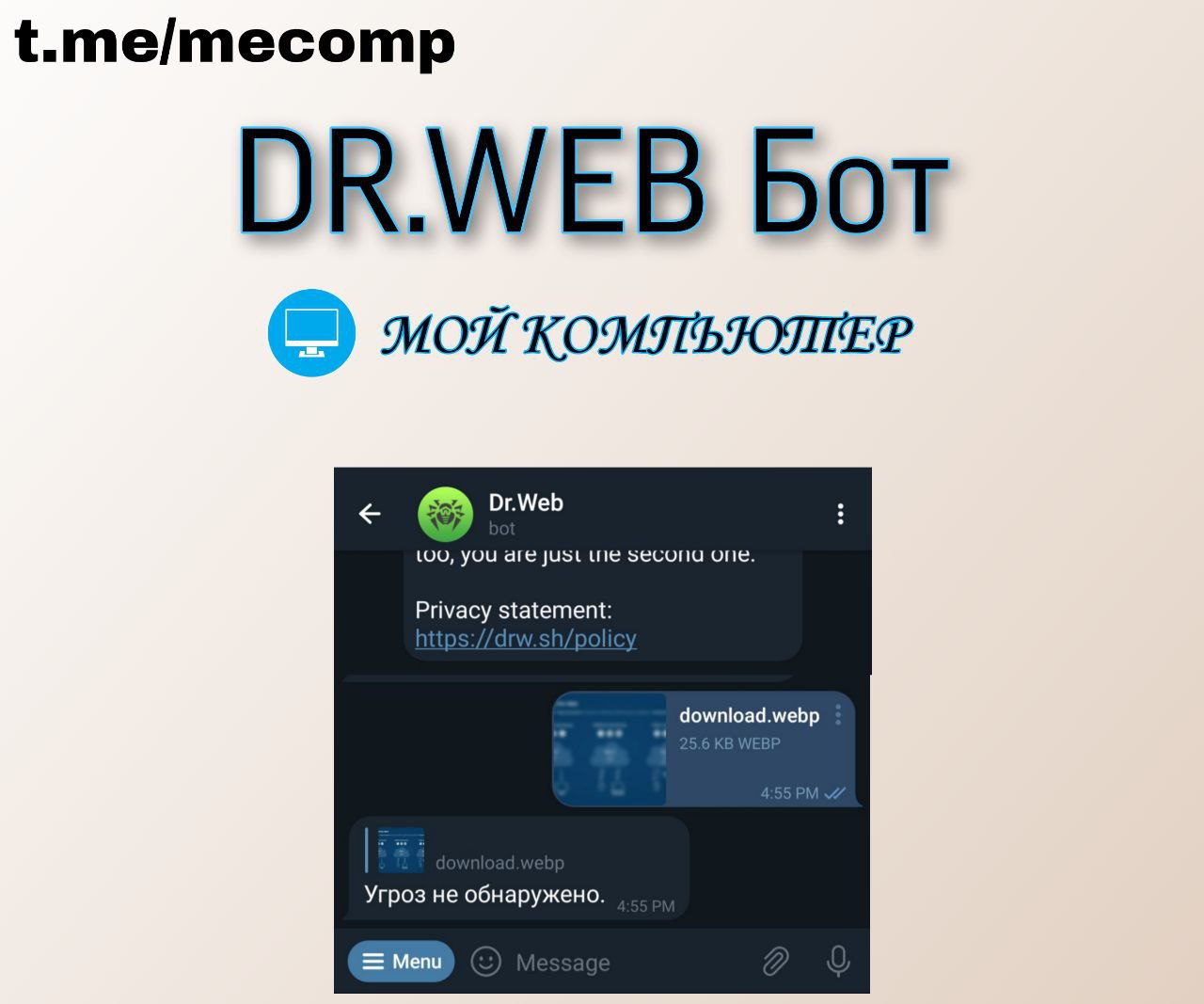 В телеграм есть официальный бот Dr.Web - @DrWebBot. Он позволяет проверить ссылки и файлы на присутствие вредоносных файлов.