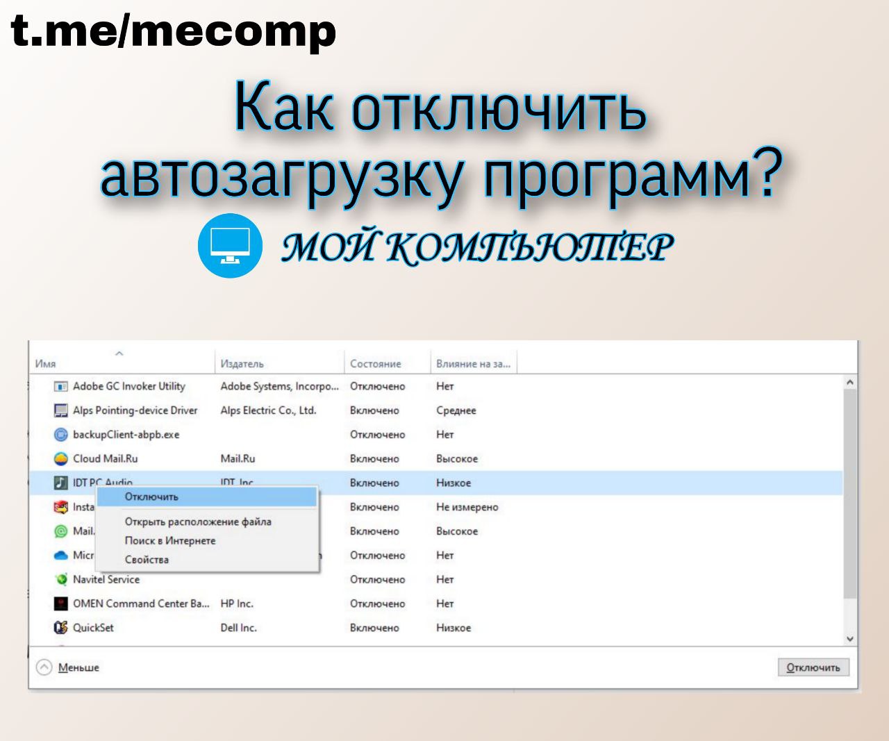 Чтобы отключить программам права на автозагрузку сделайте следующее: