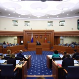 Доброе утро! Через пять минут начнётся внеочередное заседание Мосгордумы. В повестке один пункт: 1. Проект постановления Московской городской Думы «О рассмотрении Закона Российской Федерации о поправке к Конституции Российской Федерации «О совершенствовании…