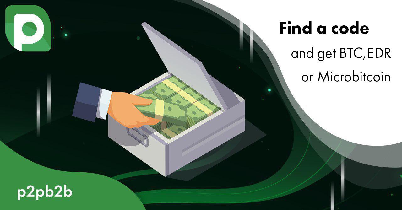 p2pb2b is very glad to announce that we will give away coins through codes. You can get from 0,0001 to 1 BTC, from 10000 to 100,000 @microbitcoinorg.