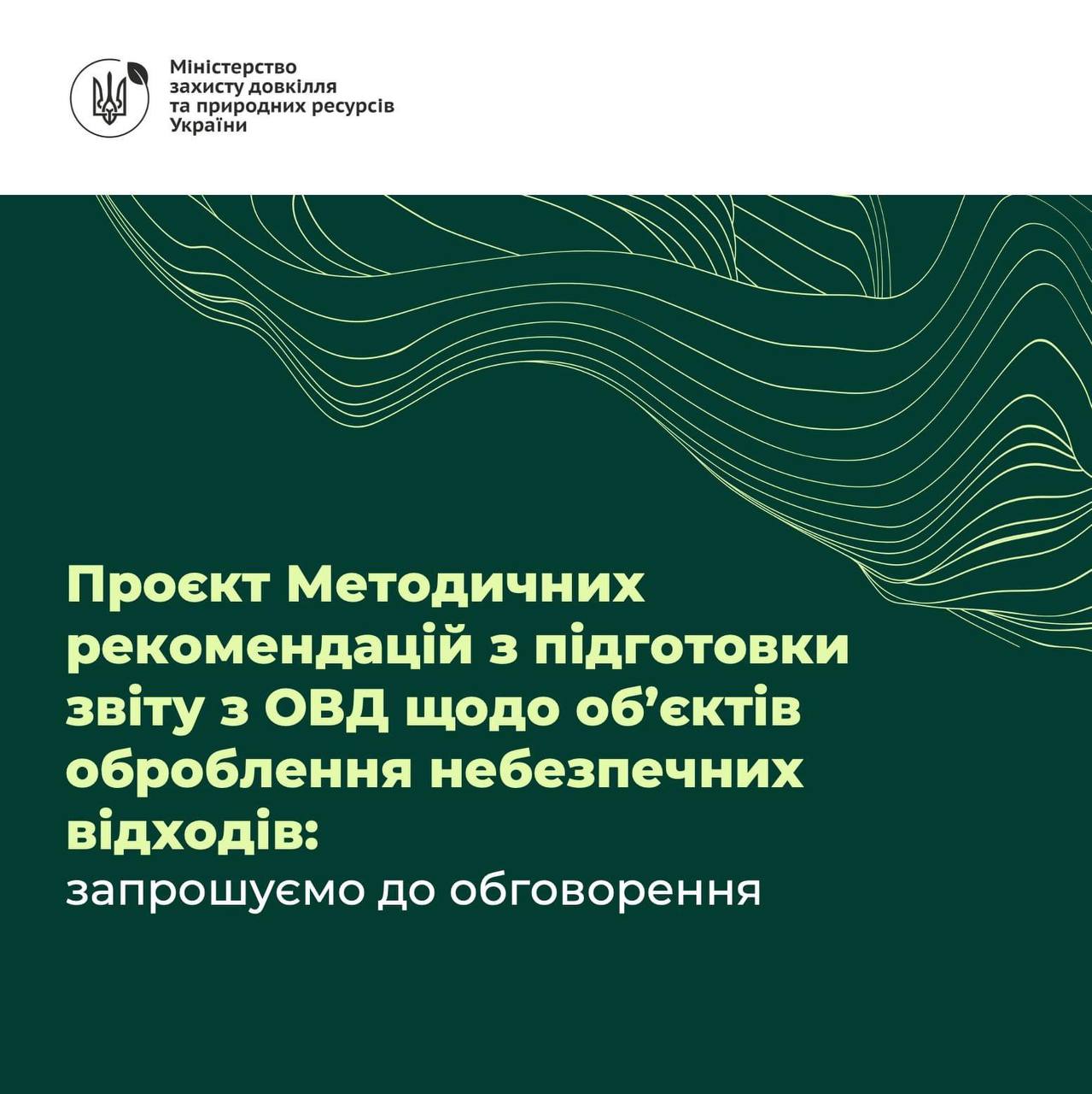 Міністерство захисту довкілля та природних ресурсів України розпочало обговорення проєкту Методичних рекомендацій з підготовки звіту з оцінки впливу на довкілля для об'єктів оброблення небезпечних відходів.