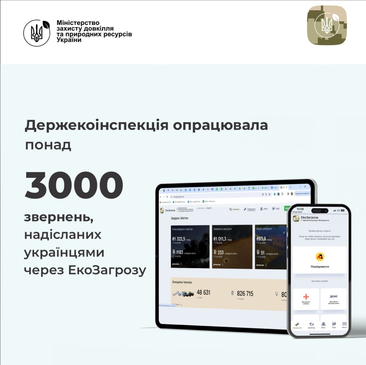 🔰Державна екологічна інспекція України опрацювала понад три тисячі звернень, надісланих українцями через ЕкоЗагрозу