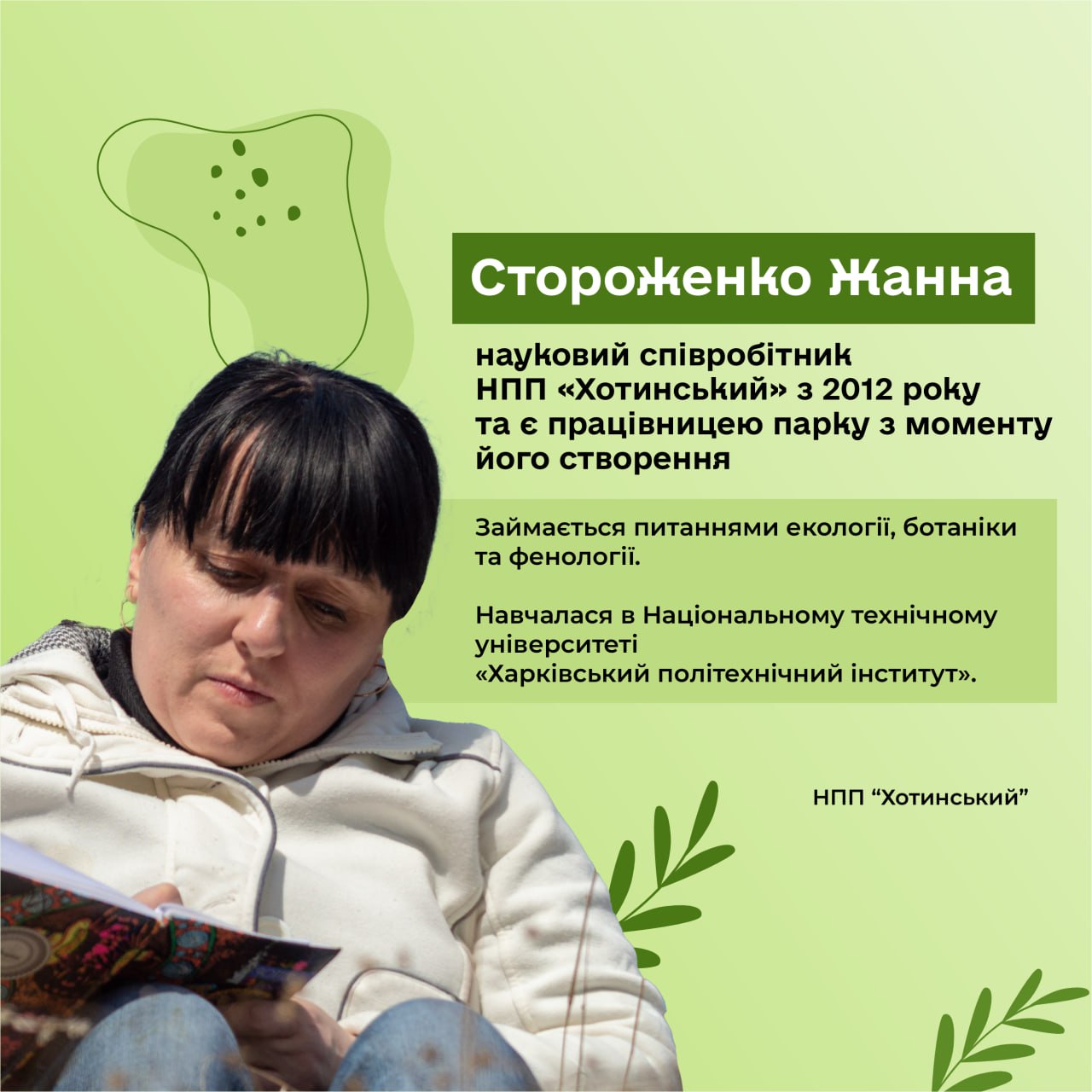 🏞Національний природний парк «Хотинський» створений відповідно до Указу Президента України від 22.01.2010 № 56. Саме з початку його створення там працює жінка-науковиця про яку буде наступна розповідь.