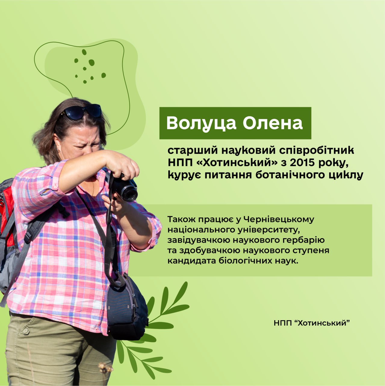 старша наукова співробітнниця НПП «Хотинський» з 2015 року, курує питання ботанічного циклу.