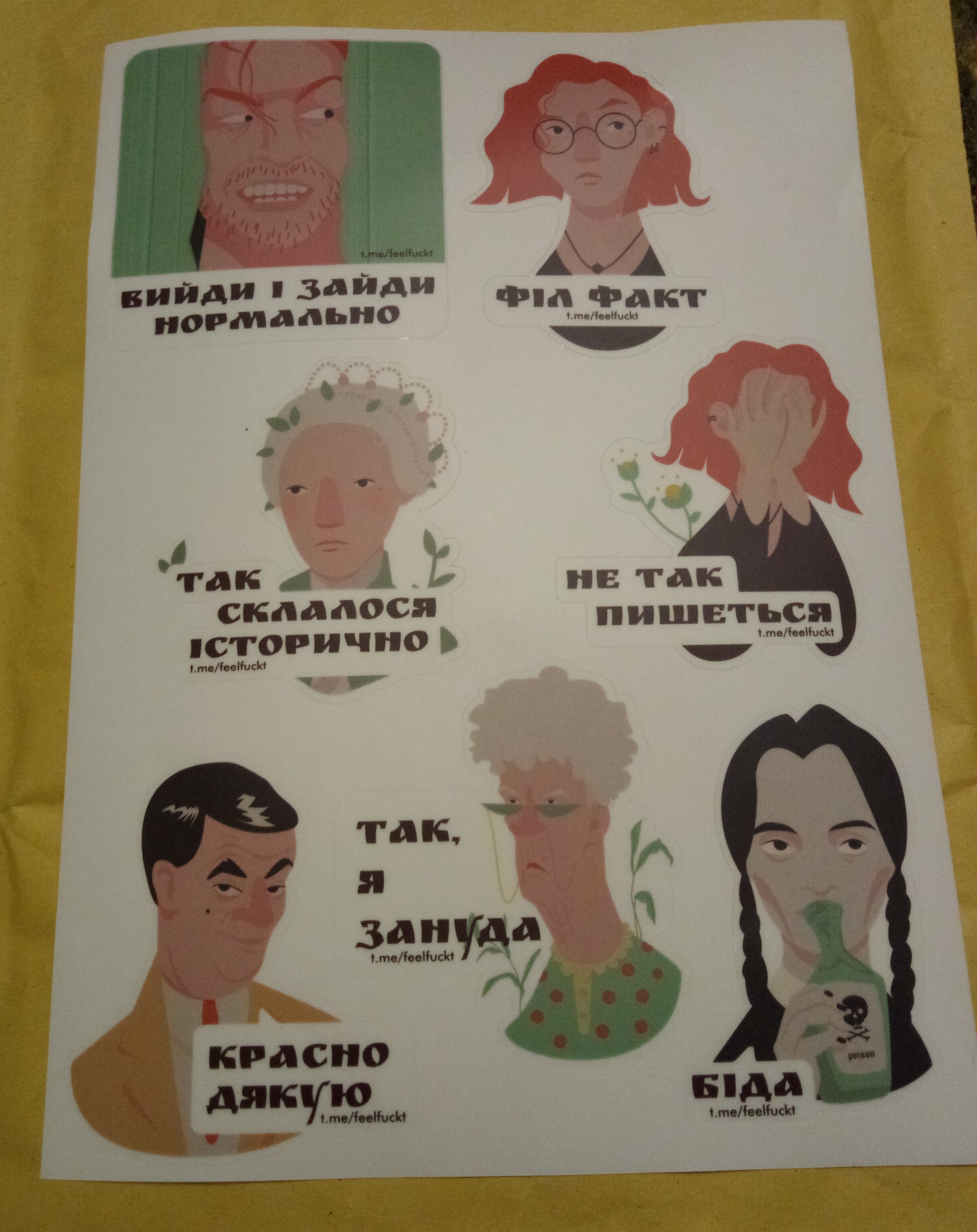 ​​Отримав подарунок від авторки каналу @feelfuckt - тепер можу спілкуватися наліпками не лише в Телеграмі, а й у реальному житті 😊