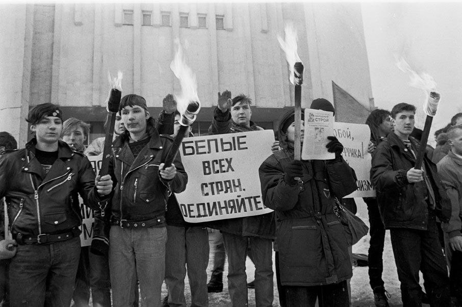 Сегодня по Рунету распространяется фейк о том, что на фото — зигующий Рогозин. На самом деле фото было сделано не ранее 1994 года, о чем говорит появившаяся в этом году газета "Народный строй". Тогда Рогозин уже никаким подростком не был и выглядел совсем по-другому. Кроме того, он уже являлся руководителем Конгресса русских общин и кандидатом в Государственную думу РФ. При таком уровне публичности ни о каких нацистских салютах и речи не могло быть. На фотографии обыкновенный фашиствующий подросток, коих в те времена было хоть отбавляй.