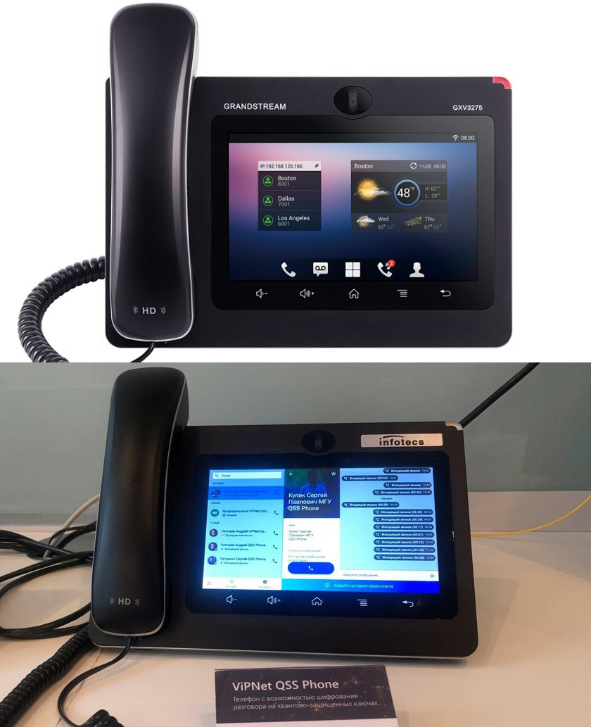 Оказалось, что российский телефон с квантовым шифрованием "ИнфоТеКС" (снизу) полностью копирует дизайн телефона американской компании Grandstream GXV3275, который можно купить на Amazon за 229 долларов (сверху).