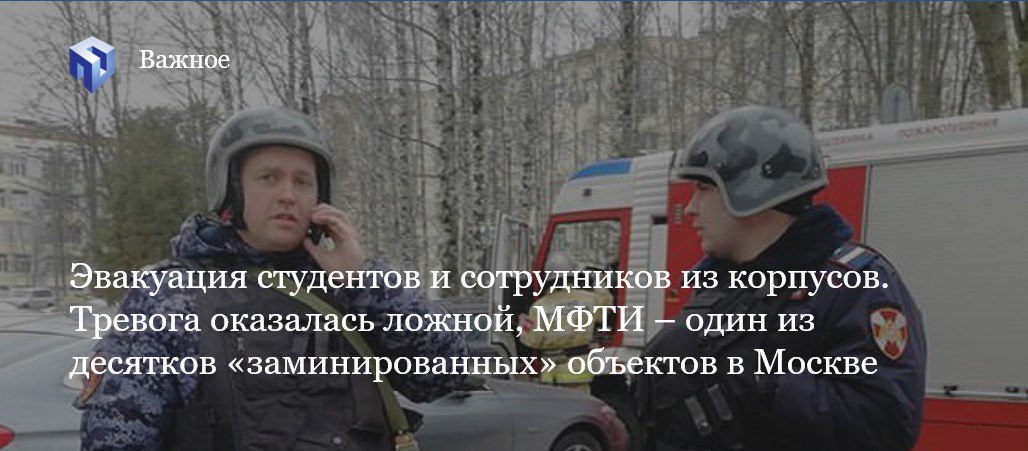 Сегодня в МФТИ прошла эвакуация из-за звонка о заложенной бомбе. На место прибыли полицейские и пожарные машины. Были эвакуированы студенты и сотрудники из Нового, Главного, Лабораторного и Аудиторного корпусов.
