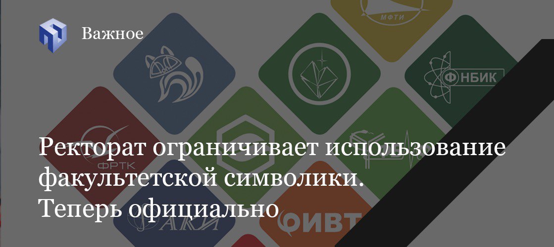 С весны 2019 года ректорат требует не использовать символику факультетов на официальных мероприятиях, таких как День открытых дверей. Закупать новые раздаточные и сувенирные материалы теперь можно только с символикой Физтех-школ.