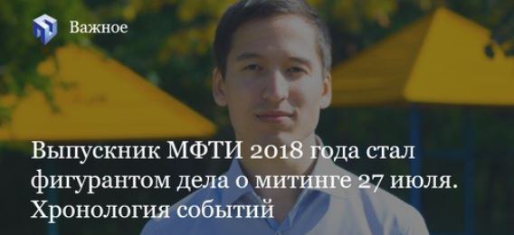 Вечером 8 августа «ОВД-инфо» написали о новом задержанном в рамках уголовного дела о «массовых беспорядках». Им оказался выпускник ФУПМ МФТИ 2018 года Айдар Наилевич Губайдулин.