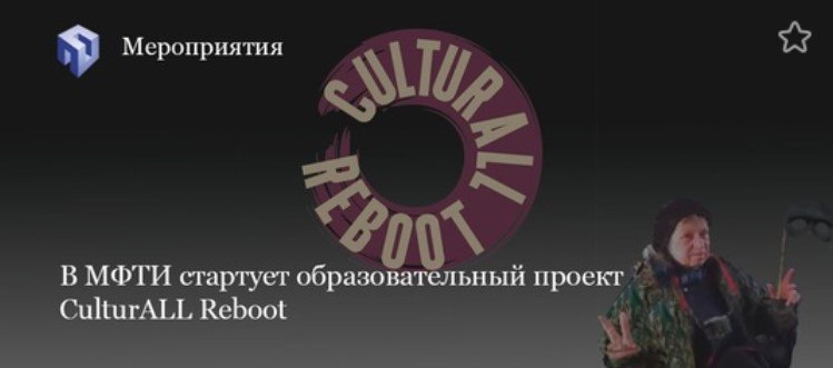 В МФТИ начинается сезон курсов от CultutrALL Reboot — образовательной программы, нацеленной на гуманитарное просвещение физтехов и физтешек.