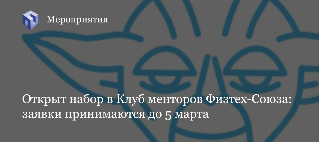 В Клубе менторов Физтех-Союза открыт новый сезон: подать заявку можно до 5 марта 2020 года на сайте miptmentors.ru. Там же можно подробнее познакомиться с деятельностью Клуба.