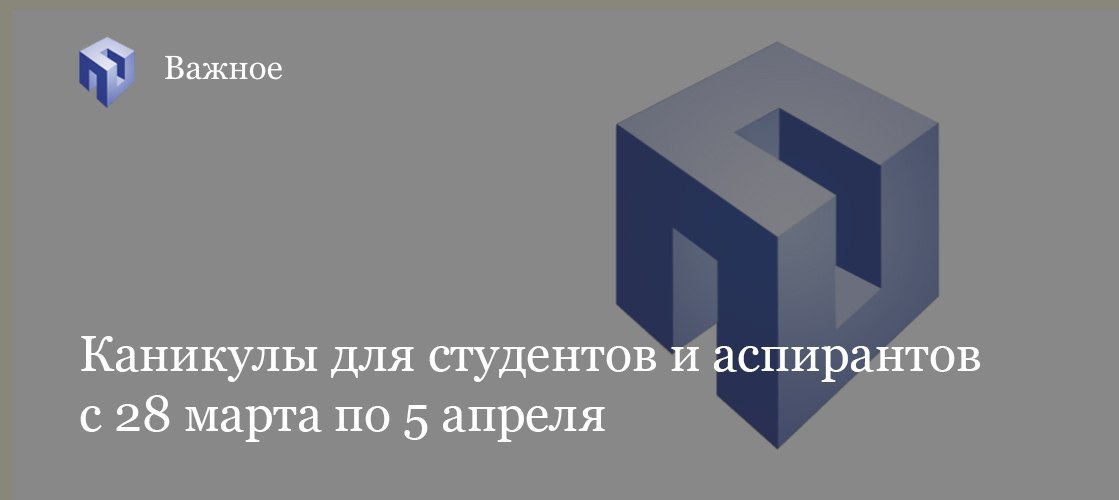 Вслед за указом мэра и постановлением губернатора о закрытии ресторанов, кинотеатров и прочих общественных мест Москвы и Московской области, вышел приказ ректора Н.Н. Кудрявцева, который переводит всех студентов бакалавриата, специалитета, магистратуры и аспирантов на каникулы с 28 марта по 5 апреля.