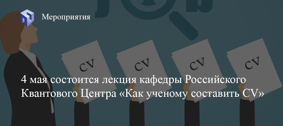 Завтра, 4 мая, в 18:00 кафедра Российского Квантового Центра проведет онлайн-лекцию «Как ученому составить CV» для студентов 1-3 курсов, которые только начинают свою научную карьеру. Лектор – Виктория Коржова, PhD in Neuroscience, нейробиолог и консультант по научной карьере.